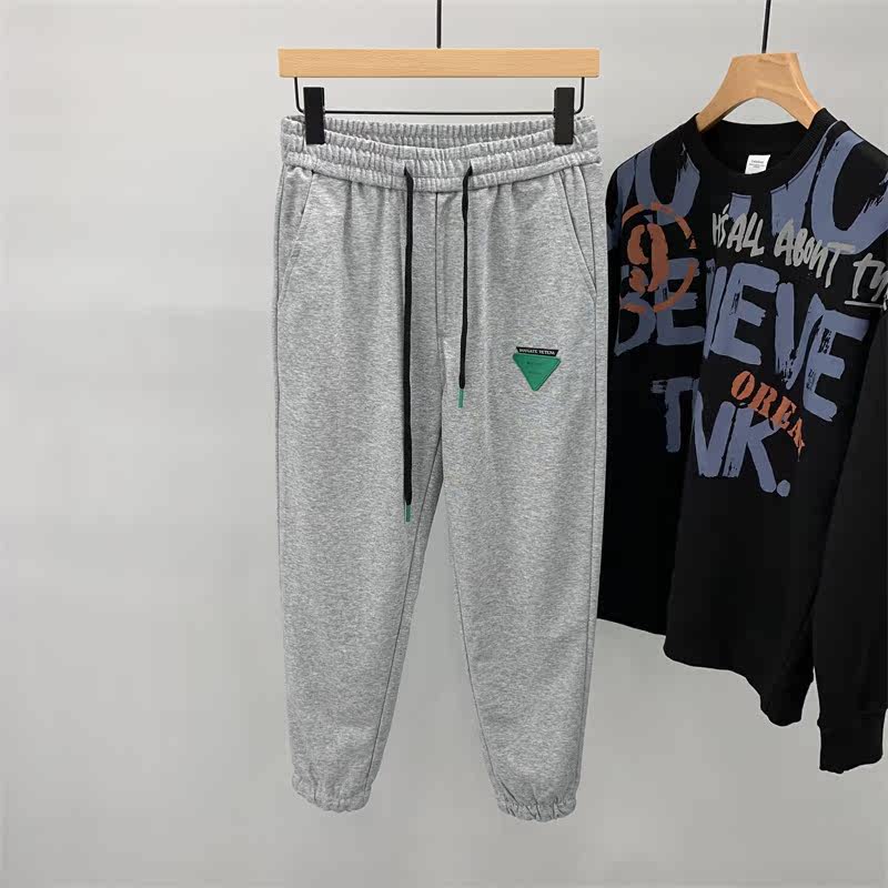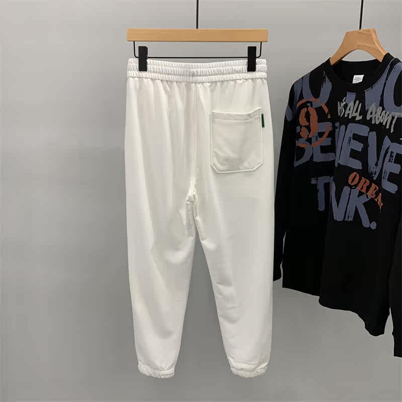 Tightness waist white knit guard pants male spring ins Chains Chauffles Handsome Harbor Wind Loose 100 lap Harness Pants Sport Pants