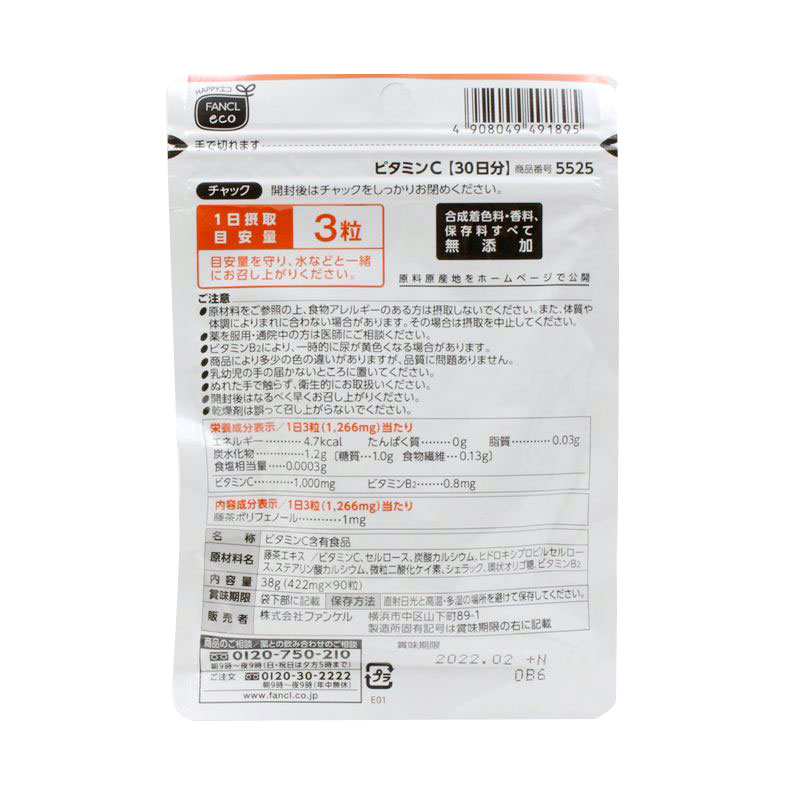 Bonded Area Japan FANCL Fangke Vitamin C Sheet Natural Vitamin VC Sheet 90 grain * 3 bags