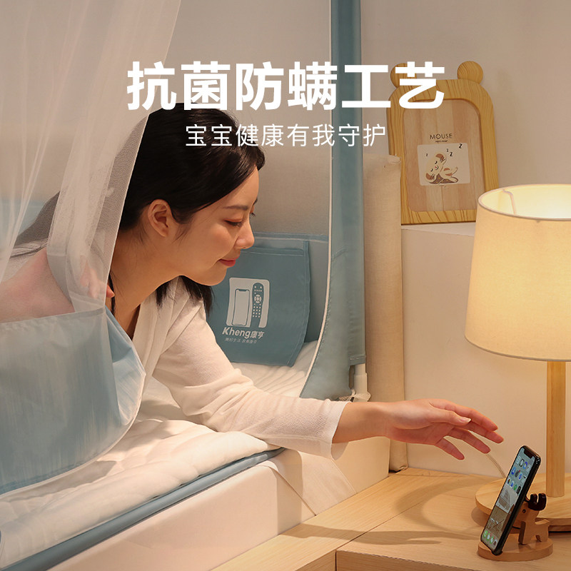 2022 Conhen new mosquito nets Home bedroom Three doors crypto thickened baby anti-fall child bed curtain one-piece