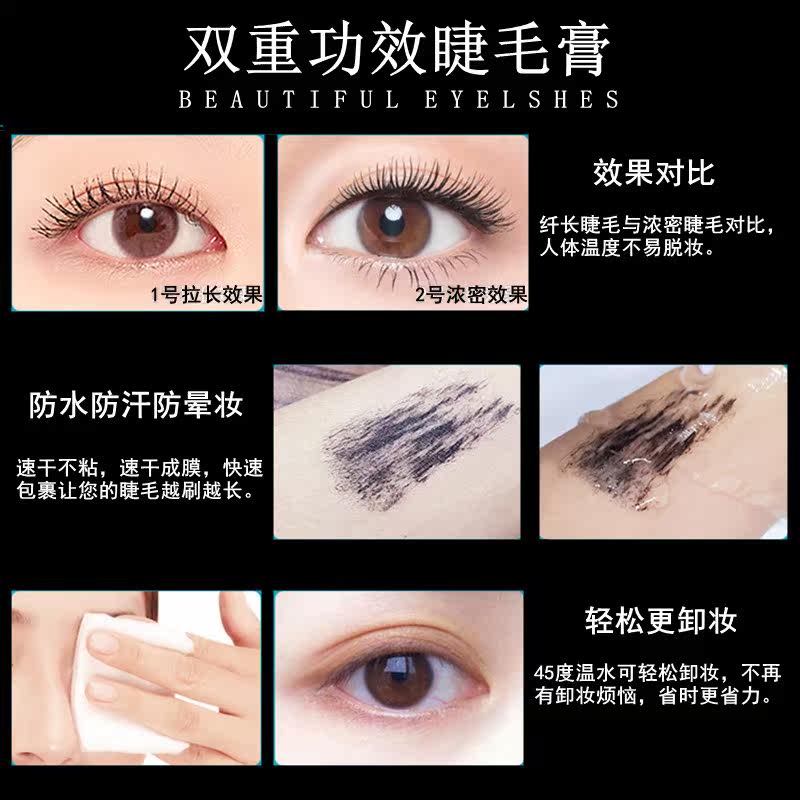 Double-effect mascara slender, curly, waterproof, not smudged, stereotyped, female, lengthened, encrypted, do not take off makeup, send eyelash curler