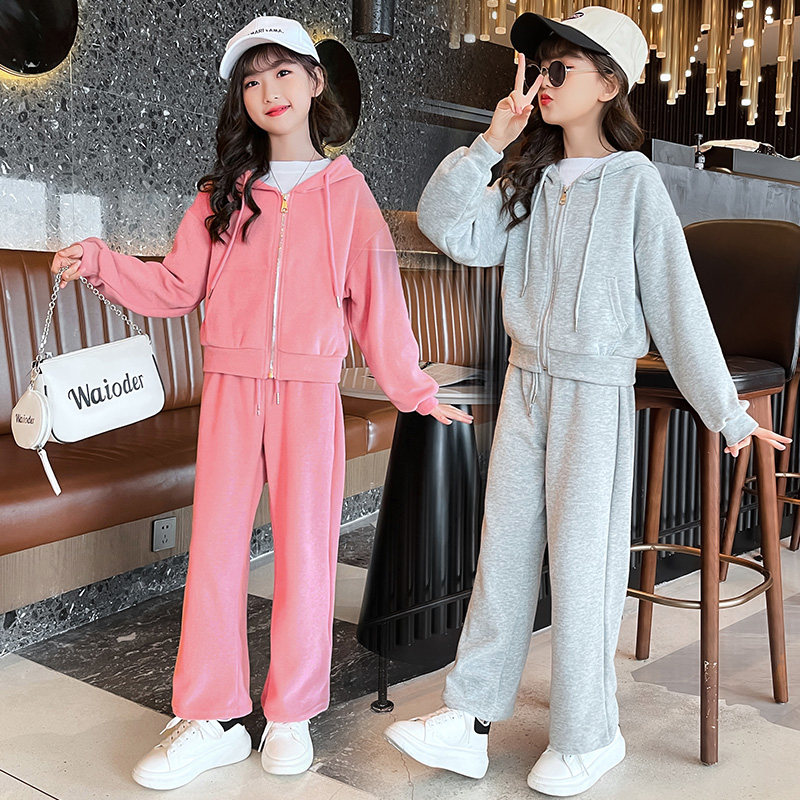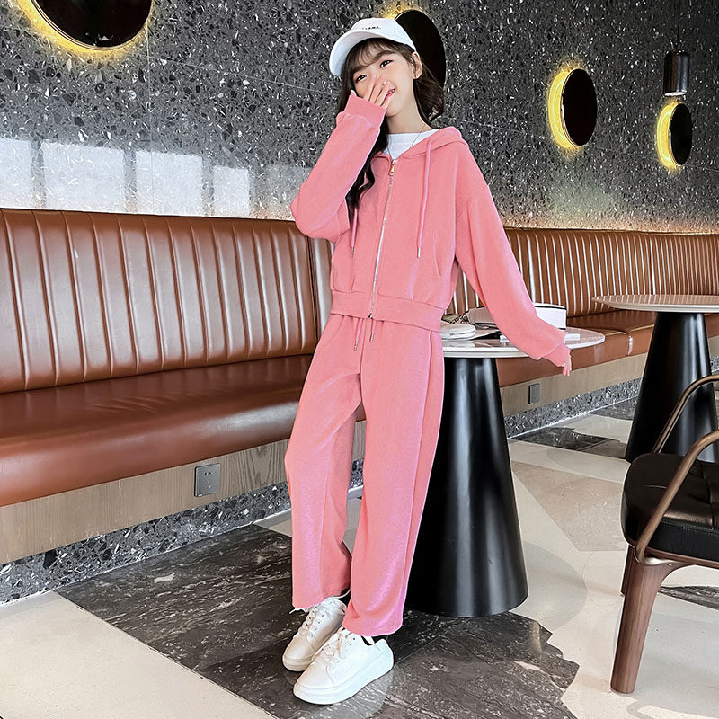 Girls spring clothing net red suit 2022 new big children's casual thick cotton straight wide leg fashionable western style two-piece set