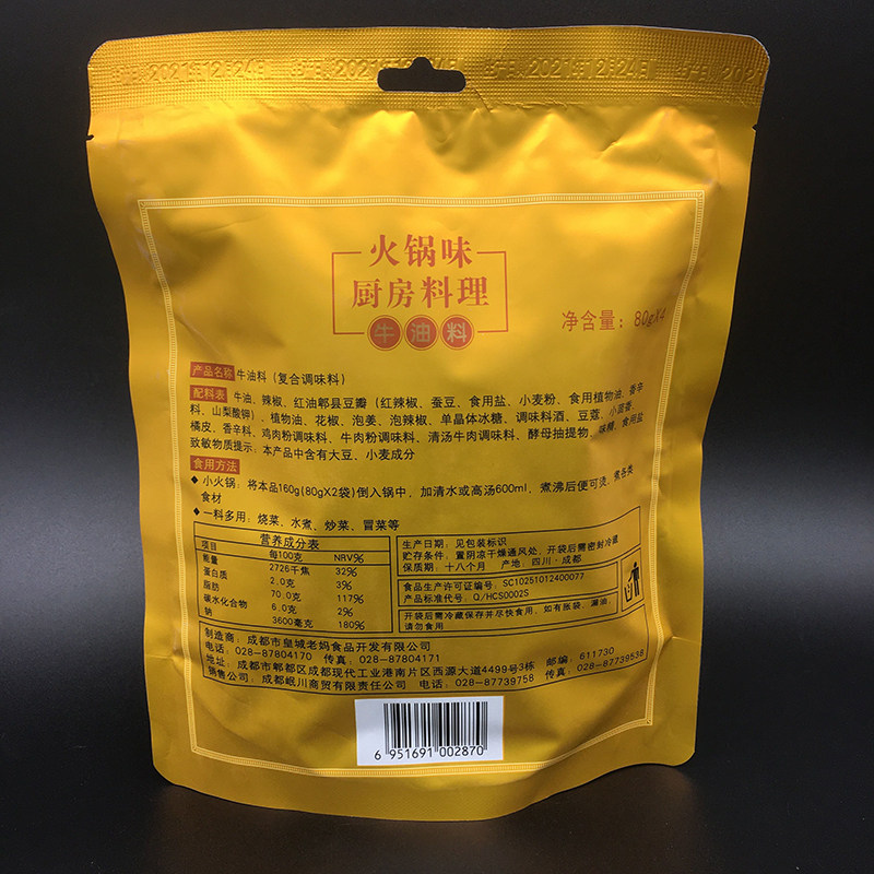 Butter material 320g (spicy) X 2 bags of clear oil material 320g (spicy) X 2 bags of butter and clear oil mixture 320g (spicy) X 2 bags of tomato material 320g (sweet and sour) X 2 bags
