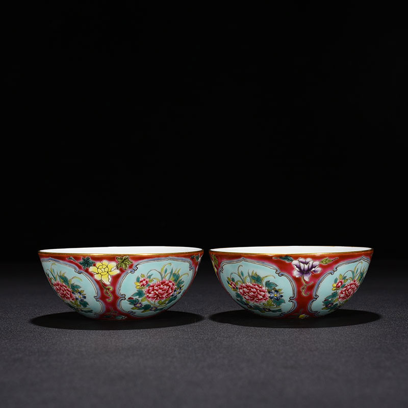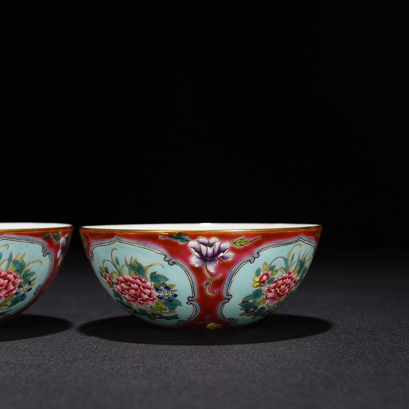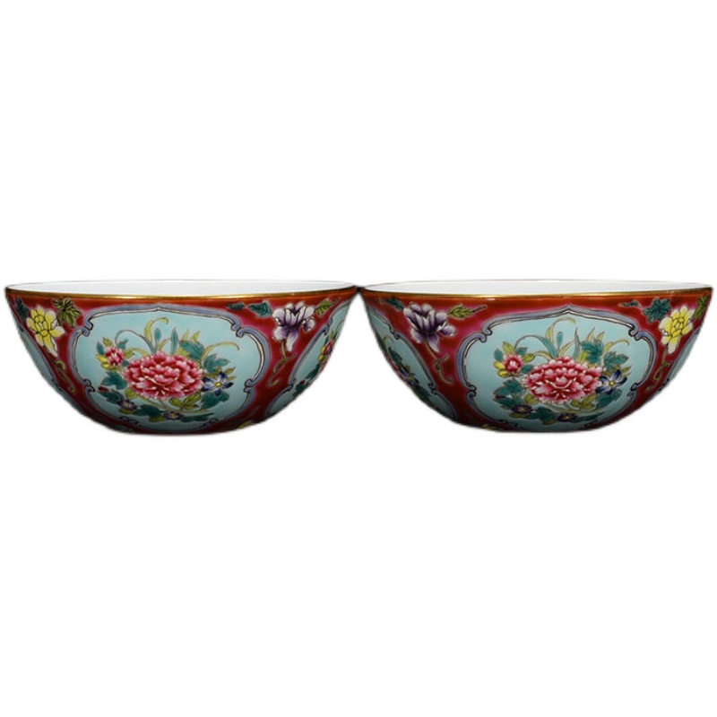 Qingyong Zhengge Grease Red Land Enamel Color Peony Floral Grain Mouselet Bowl