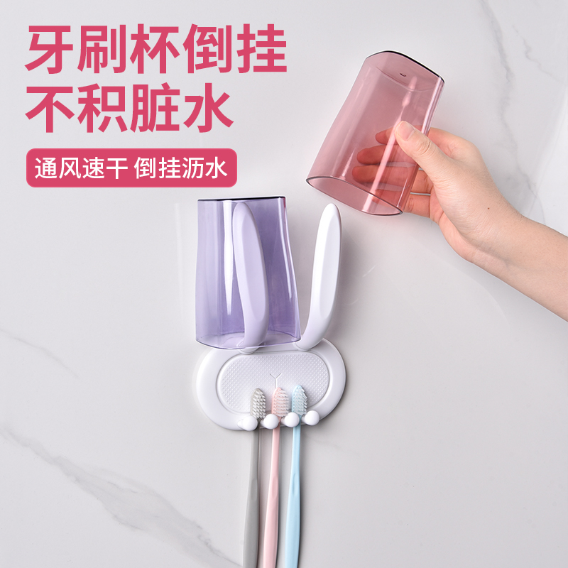 Home Dress-Pink * 2 (Toothbrush Tooth Cup Co-Containing Strong Adhesive-Free Punch) Inverted Hanging Leachate Household Dress-White * 2 (Toothbrush Tooth Cup Co-Contained Strong Adhesive-Free Punch-Free) Upside Down Hanging Drain Family