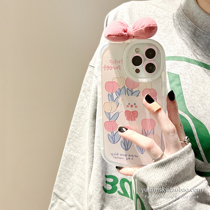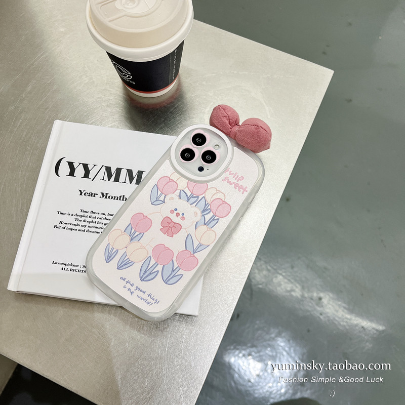Ultra Cute Tulips Small Bears Apply iPhone12 11promax Apple 13 Mobile Phone Protection Shell Xs Daughter Xr Cartoon 8