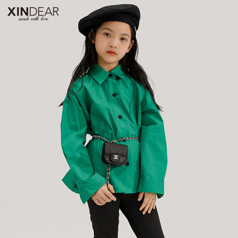 Girl Pure Cotton Long Sleeve Shirt Spring Autumn New Children Women's Turned Fashion Foreign Pie Shirt Korean Version CUHK Tong Customize