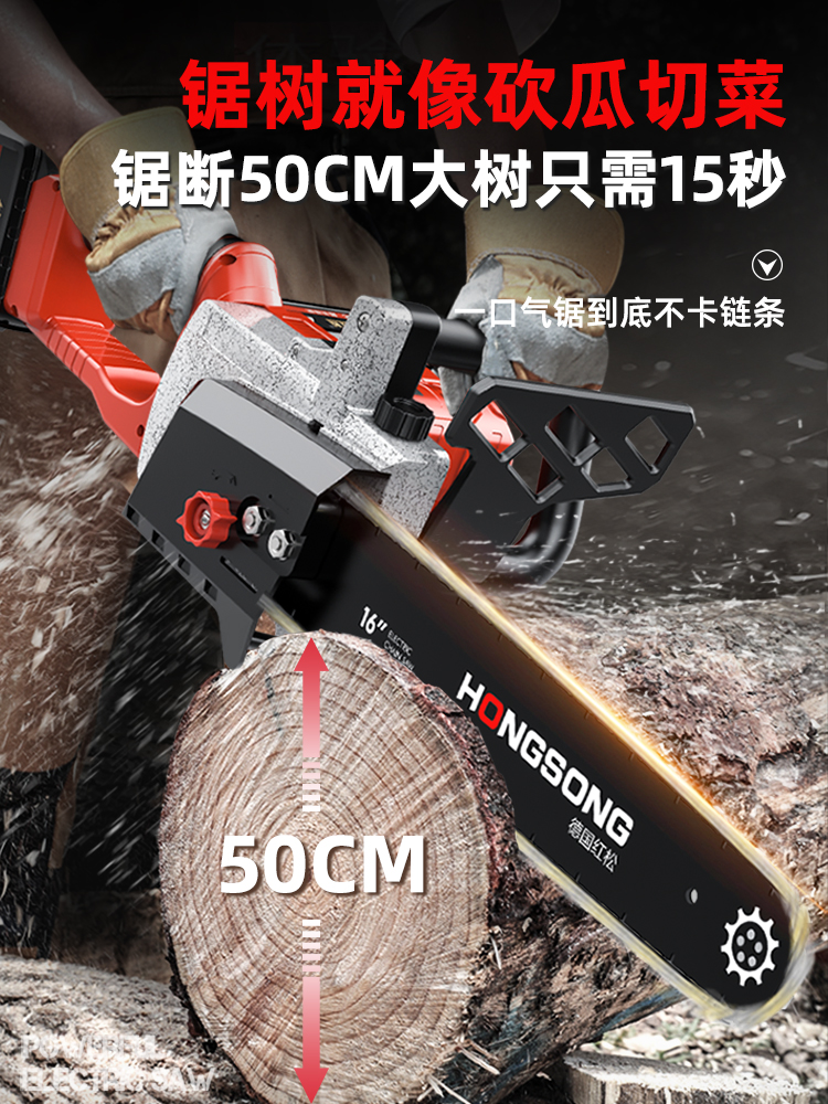 Red Pine Rechargeable Electric Saw High-power Household Lithium Electro-Electric According To Electric Saw Handheld Outdoor Chainsaw Cut Tree Logging Saw