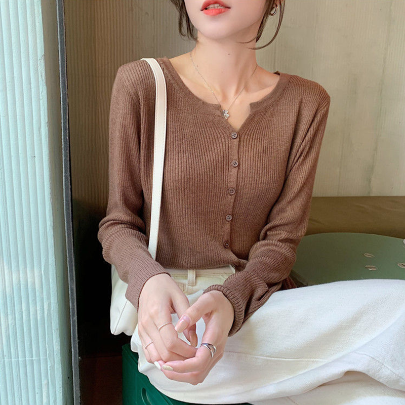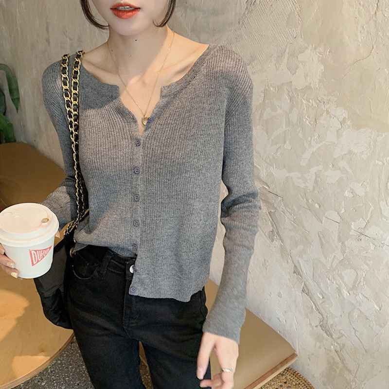 2022 spring and autumn new V-neck long-sleeved knitted bottoming shirt women thin section foreign style all-match sweater cardigan coat women