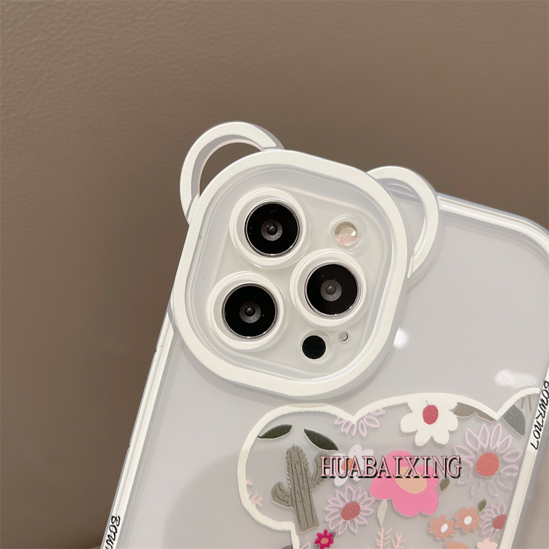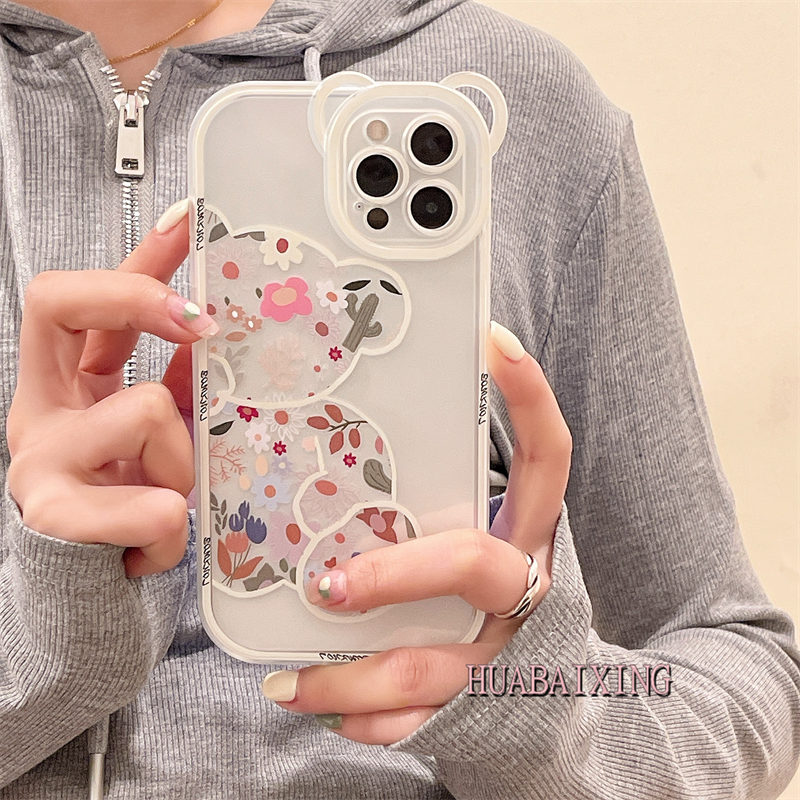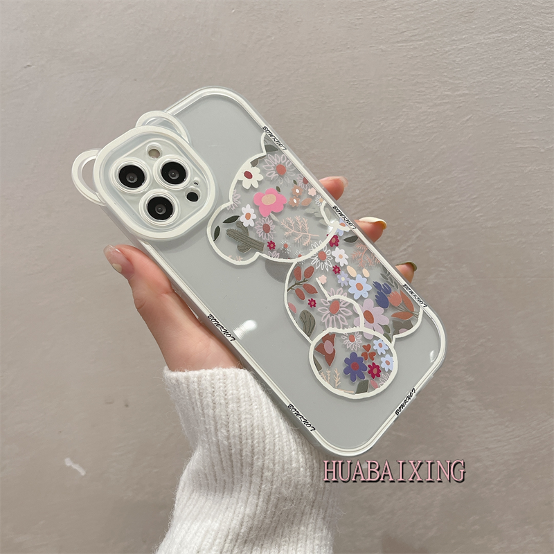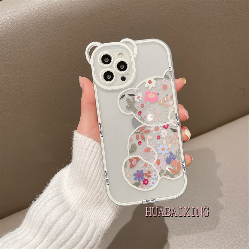Cute Cartoon Transparent Broken Flowers Little Bear Apply iphone13promax Apple 12 11 phone protection shell new 13pro silicone xsxsmax idea