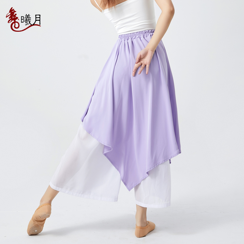 Dance practice pants women's chiffon elegant skirt pants Chinese classical dance wide-leg pants modern dance body show clothing