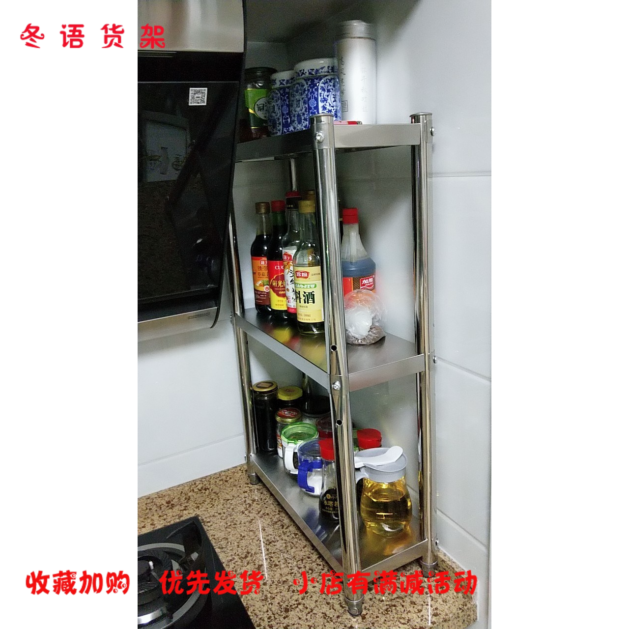 Kitchen rack length 40 width 30 square floor multi-layer small 50 narrow 20cm seasoning jar shelf 35 cm