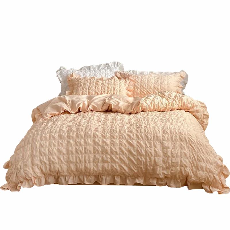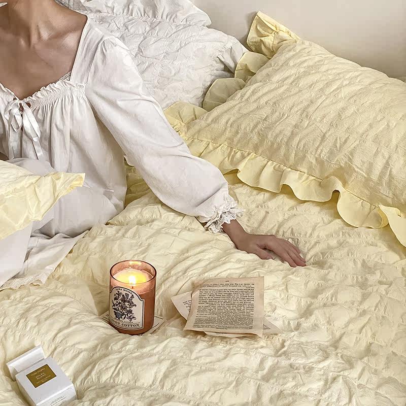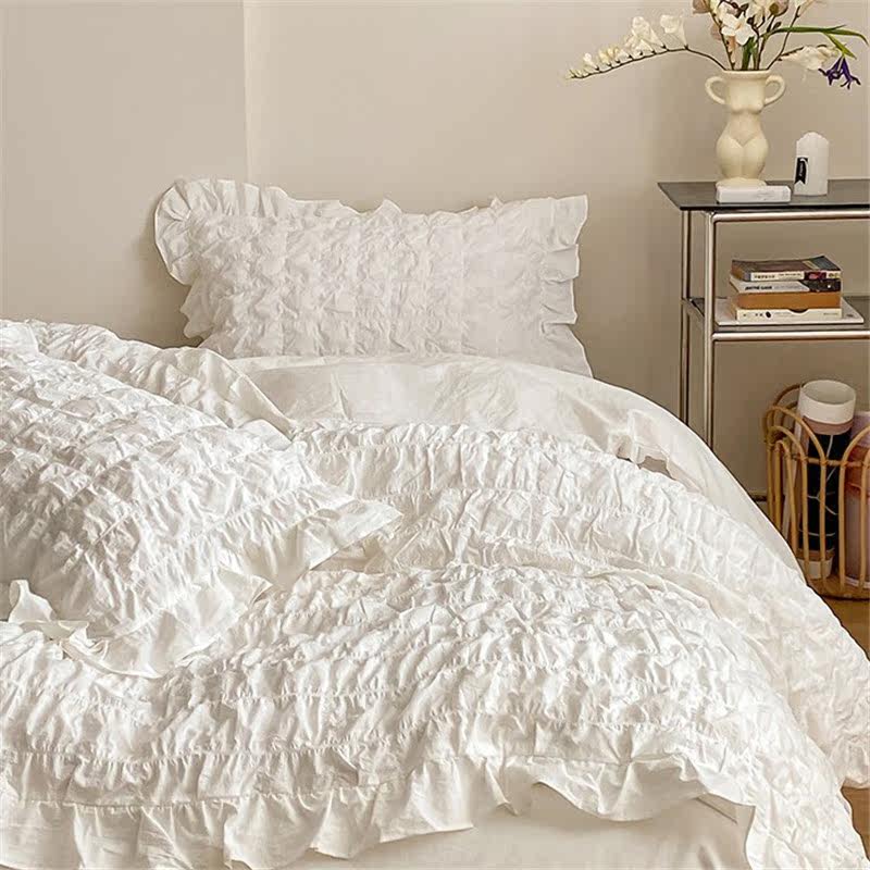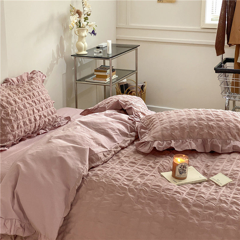 Korean version Ins wind vegetarian color All cotton washed cotton Four sets Princess Wind Quilt Cover Pure Cotton Quilt Cover Nude Bed Linen Bed