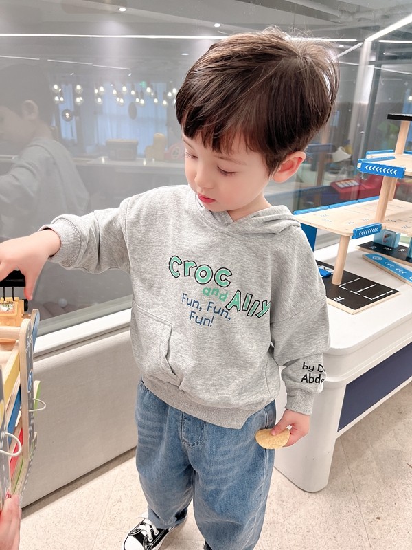 The details are amazing~ Boys stitching letters hooded sweatshirt 2022 spring new children's baby casual top