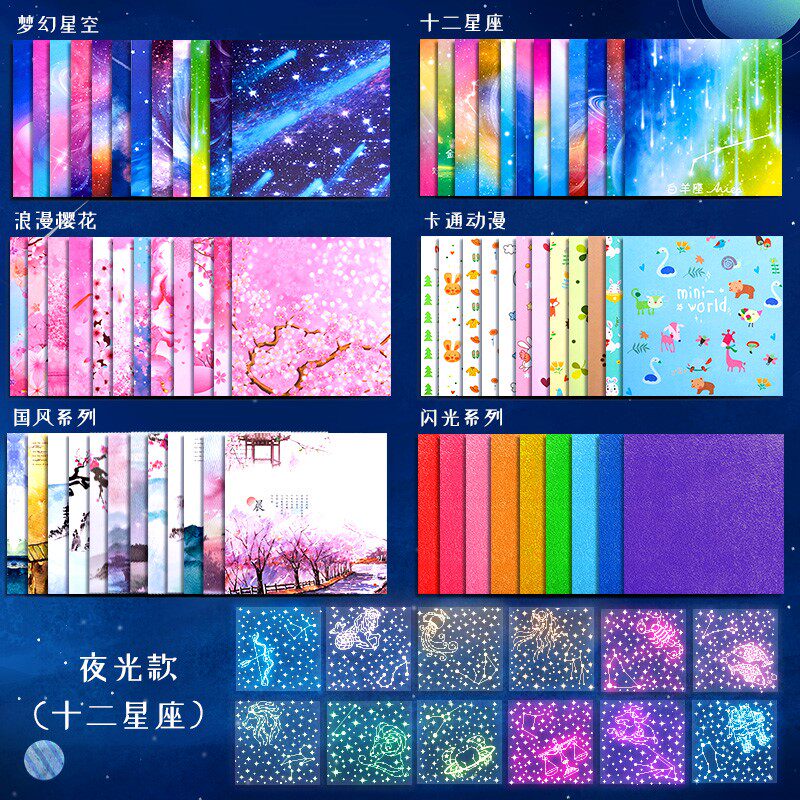 Luminous paper Thousand Paper Cranes color photocopying paper Star folding paper Double face twelve Constellation Cherry Blossom Laminated Paper Jam color thickening