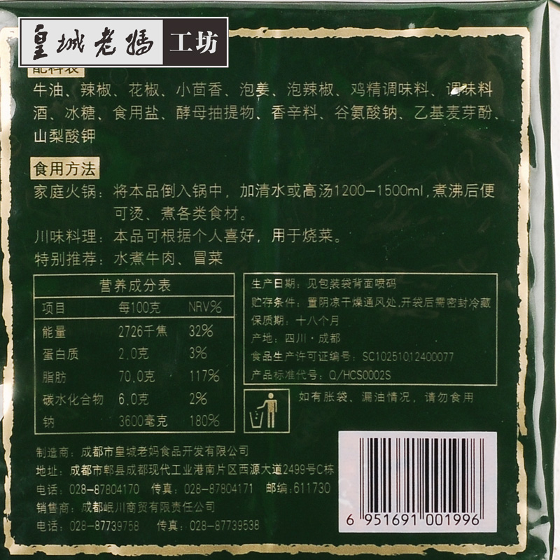 Sichuan Tenors Real City Mom's Workshop Bull Oil Hotpot Soup Bottom 410g Hot Pot Stock stock Cooking Strings and Spicy Hot Flavors