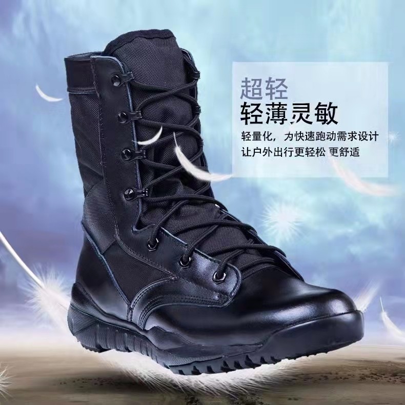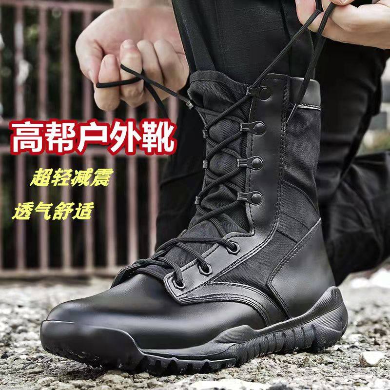 Summer Combat Boots Men Ultralight Tactical Boots CQB Genuine Leather Outdoor Breathable High Cylinder Security Boots Men Mountaineering Desert Boots