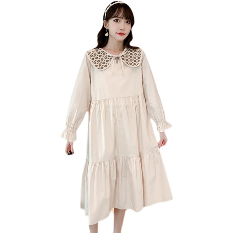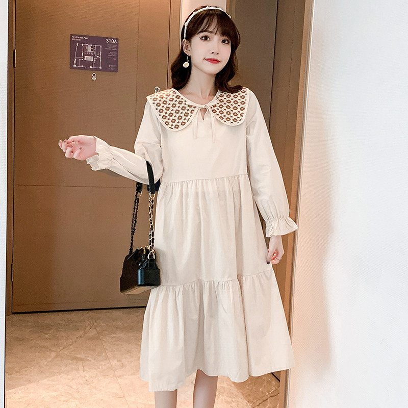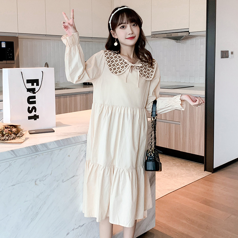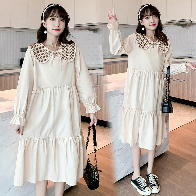 Pregnancy Woman Dress Spring Dress New Korean Version of the Long version dolls collar foreign dress Long sleeves Loose Slim sweet and long-sleeved dress