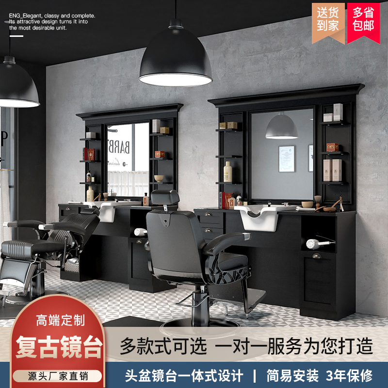 Barber Retro Hairdressshop Mirror Table Beauty Hair Shop Oil Head Gallery Haircut Solid Wood Mirror With Light Men Hair Salon Special