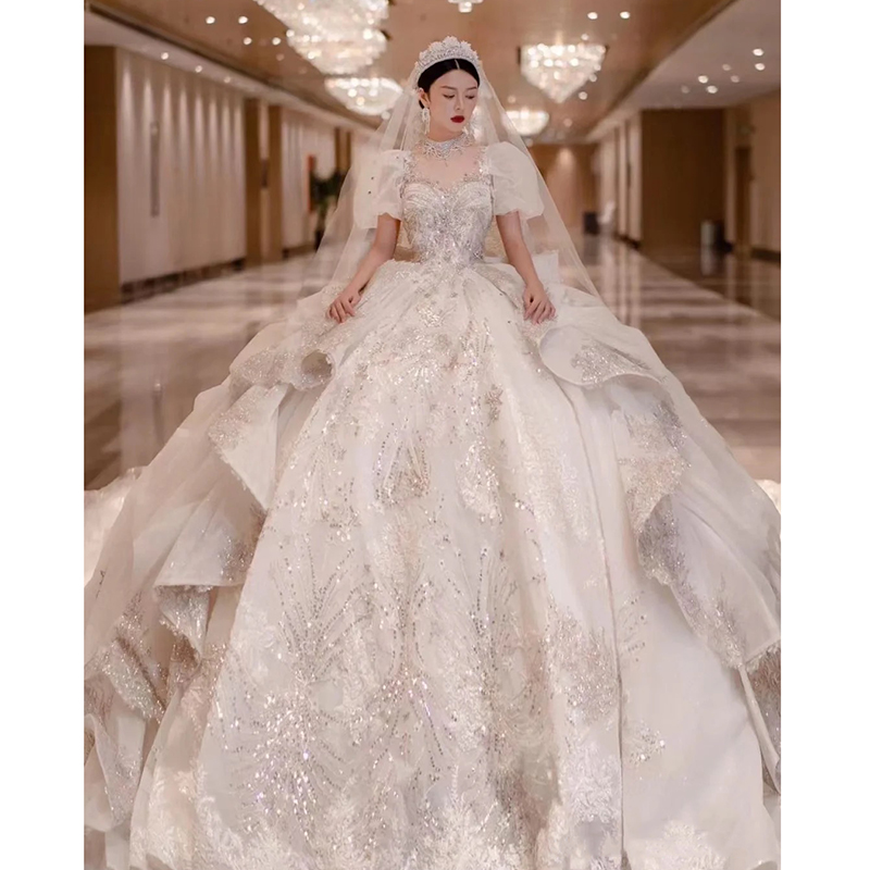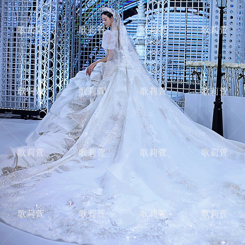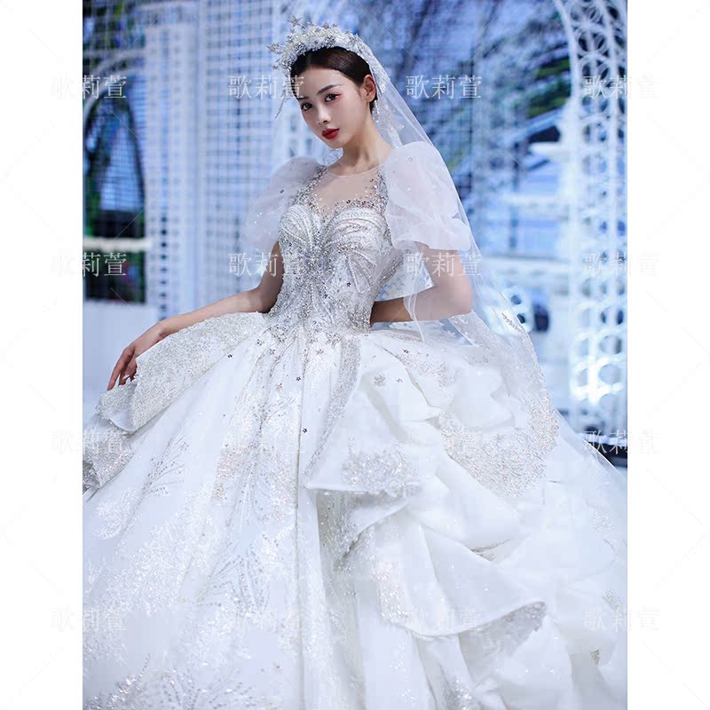 Main Wedding Dress 2022 New French Bride Premium Texture Luxury 2021 Heavy Industry Retro Court Style Big Tail Light