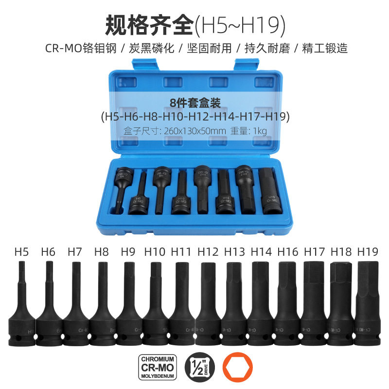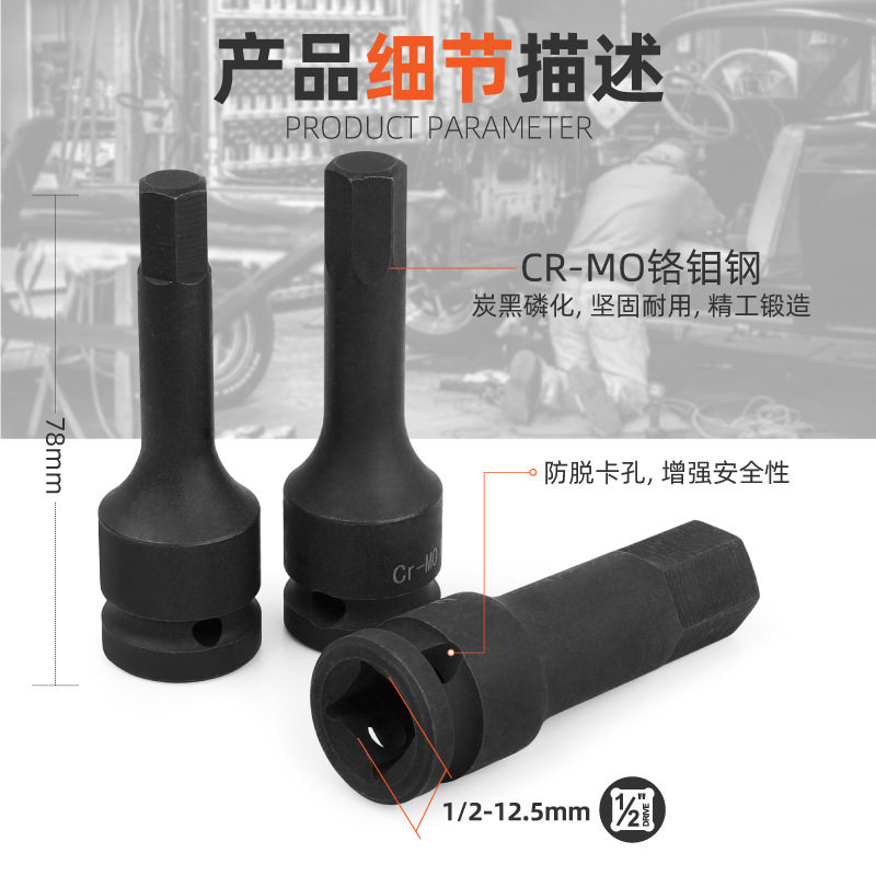 One-piece pneumatic wrench batch head 1 2 big flying one-piece batch head pneumatic inner hexagon screw socket set lengthened pneumatic wrench