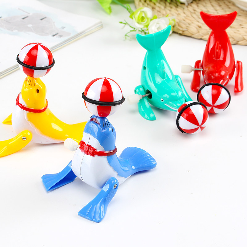 Upper Chain Clockwork Toy Small Seal Small Sealion Dolphin Top Ball 360 Degrees Rotating Children's Toy Small Gift