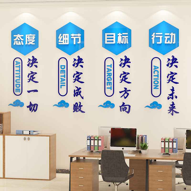 Office wallpaper self-adhesive background wall decoration company Inspiring Sign Wall Sticker Painting 3d Solid Enterprise Cultural Wall