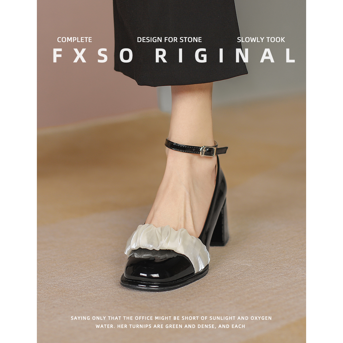 FXSO Square Alley Round Head Retro Mary Rare Shoes 2022 Summer New 100 Hitch High School Coarse Heel Temperament Single Shoe Woman