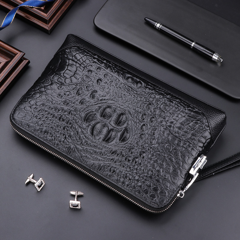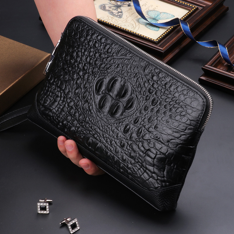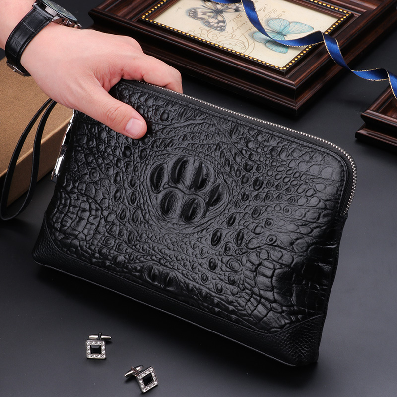 Hand Grab Bag Men Genuine Leather Handbag Men's Hand Grip Bag Crocodile Print Wallet Bag Male Hand Carry Bag Bull Leather Code Lock Envelope Bag