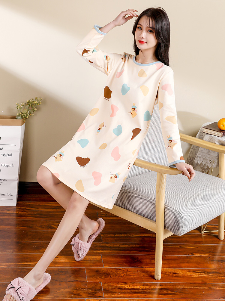 Sleepwear woman pure cotton fresh and cute loose spring and autumn Home Clothing 2023 New Knit Full Cotton Fall Long Sleeve Sleeping Dress-Taobao