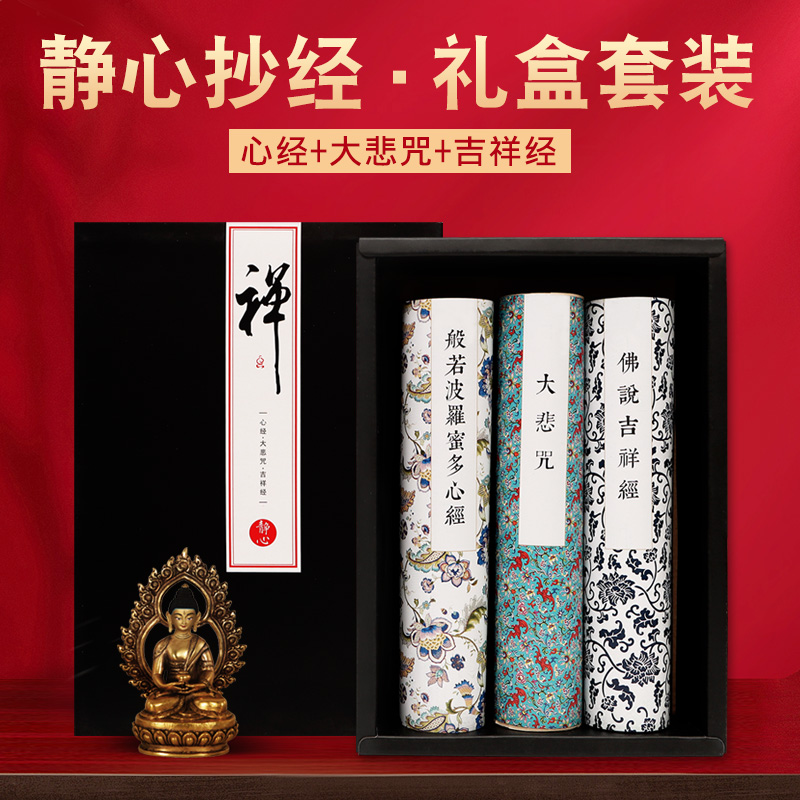 Heart Sutra handwritten gift box Buddhist scriptures Great Compassion Mantra auspicious scriptures scripture red small script brush soft pen calligraphy copy copybook beginners entry practice calligraphy meditation prayer copybook set