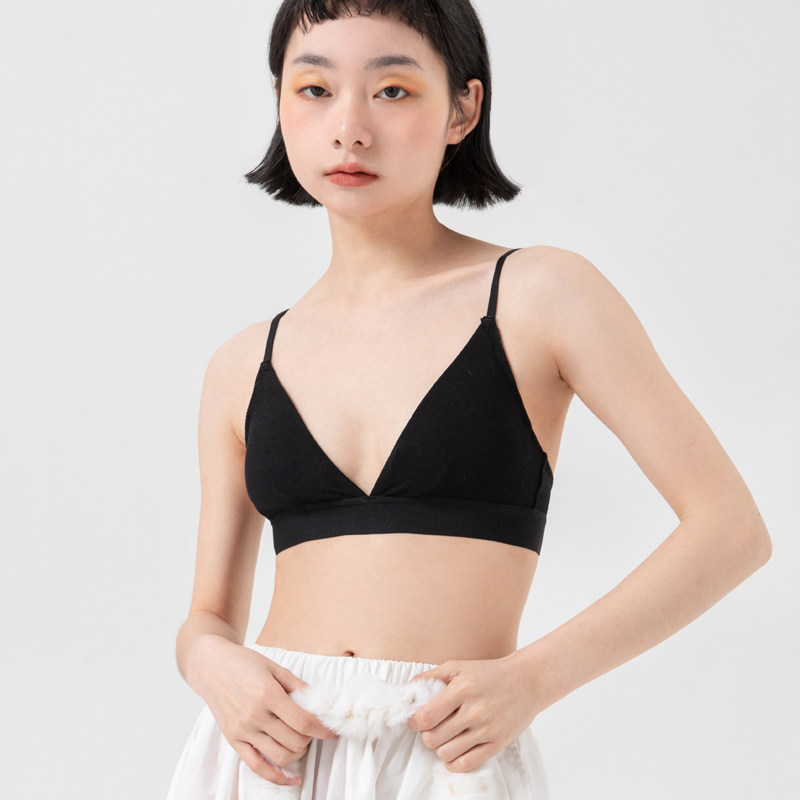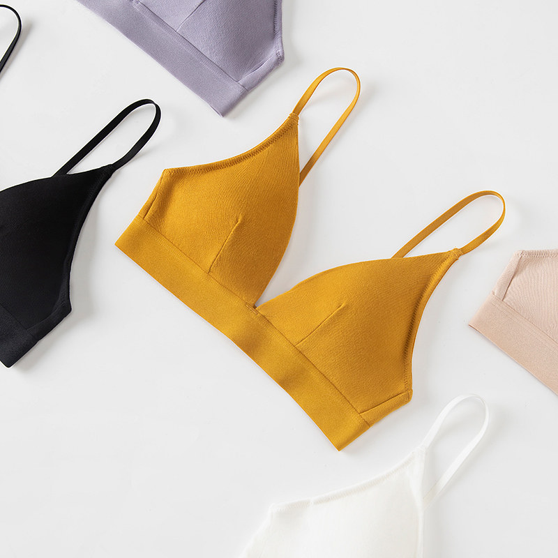 FIRSTMIX French triangle cup underwear candy color no steel ring girl bra small chest thin summer deep V