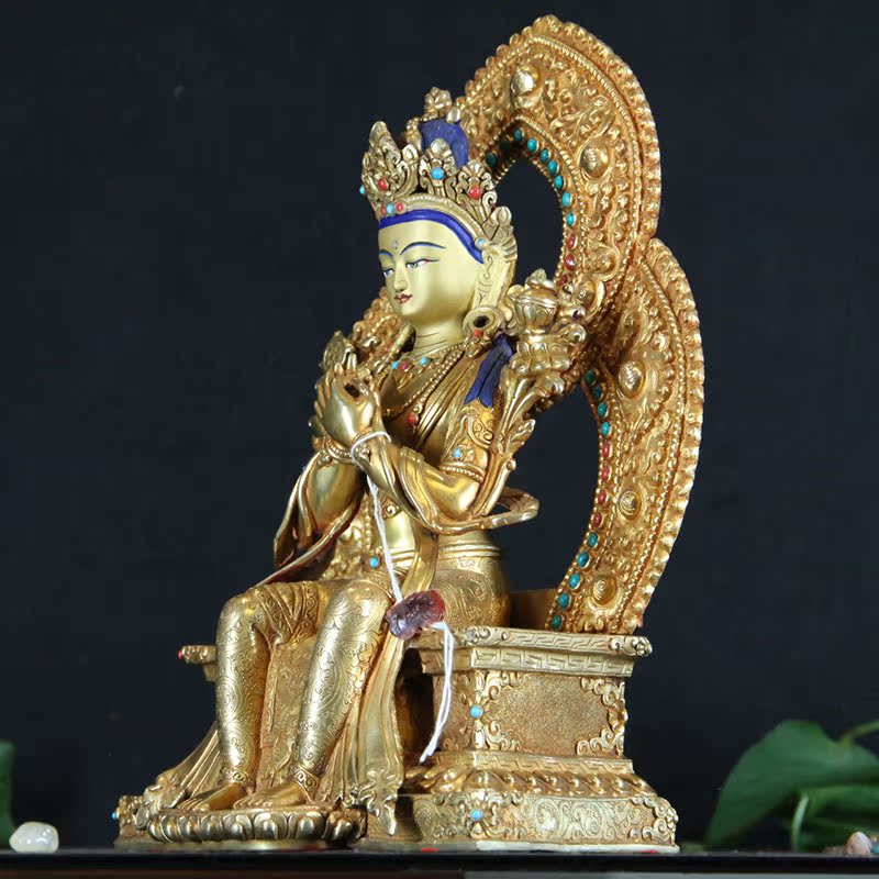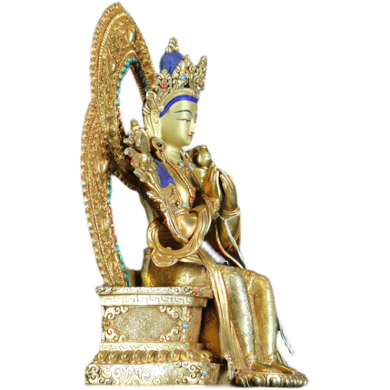 Tibetan Maitreya Buddha Nepal pure handmade future Buddha ornaments Qiangba Buddha red copper gilt carving 27cm