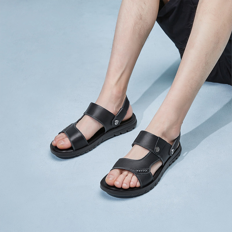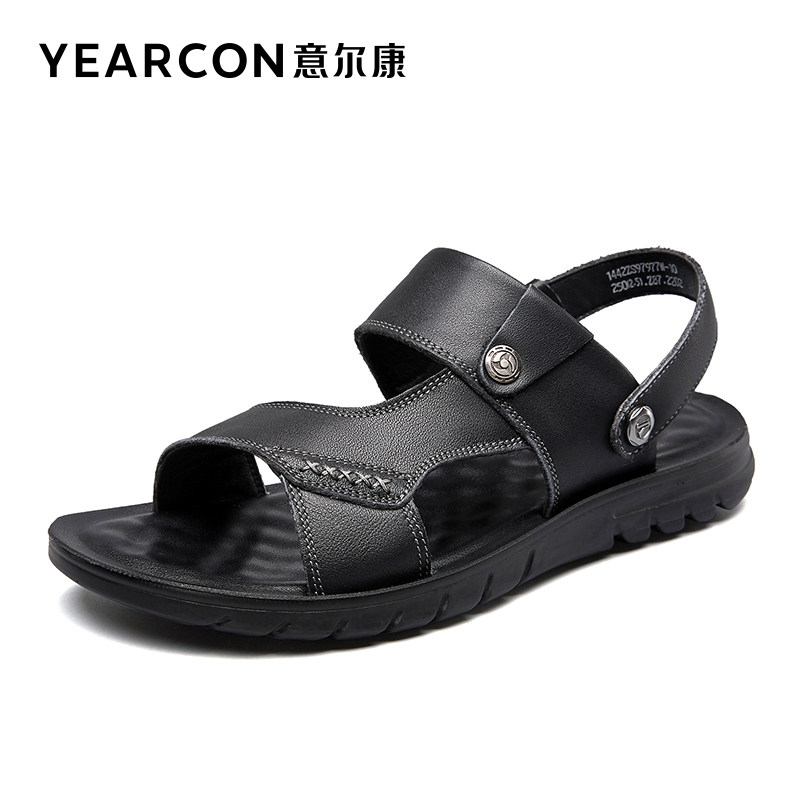 Yercon Men's Shoes Summer Sandals Men's Casual Beach Shoes Outwear Genuine Leather Teenagers Outdoor Men Drive