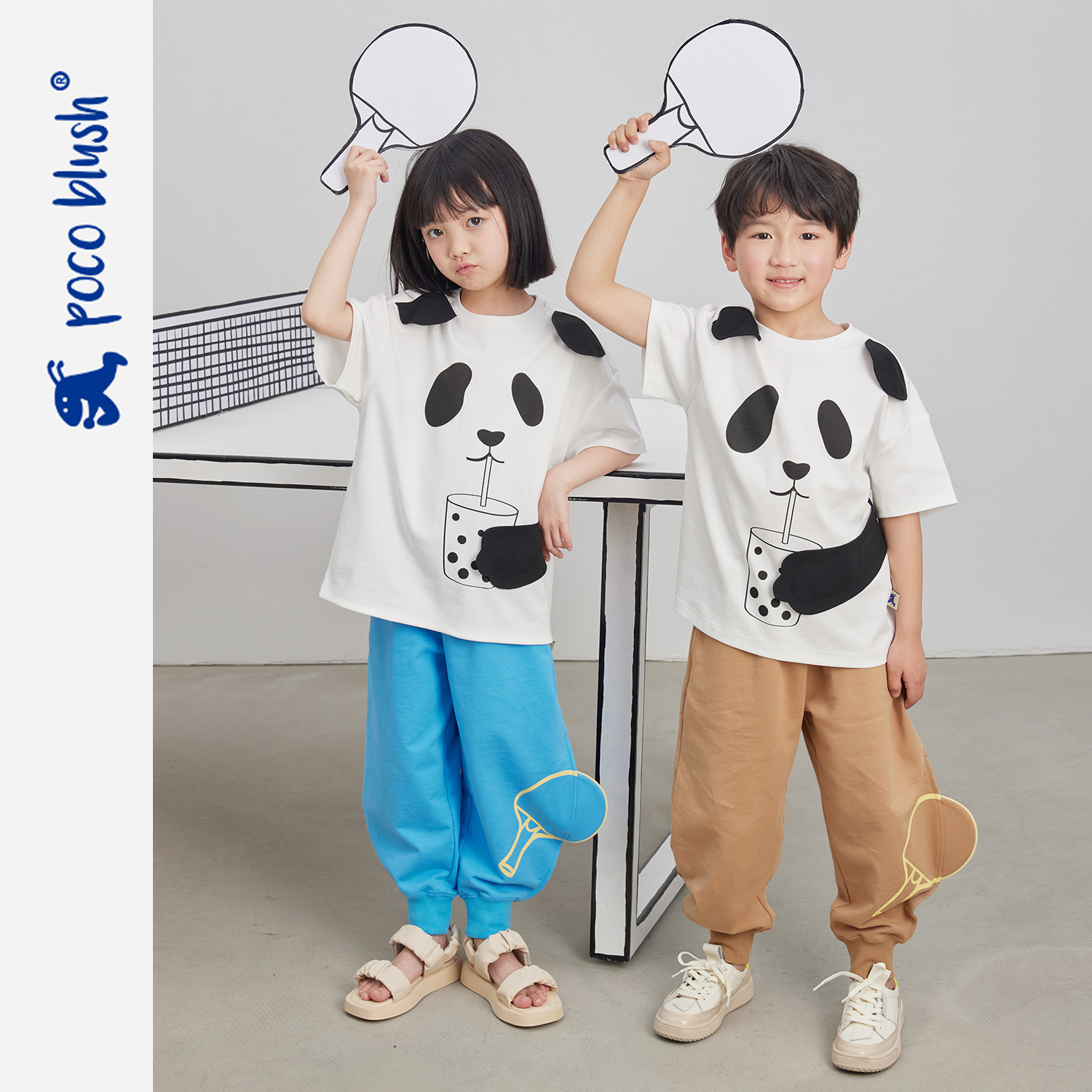 pocoblush original design panda hand-painted summer boy new white girl short-sleeved children's printed T-shirt