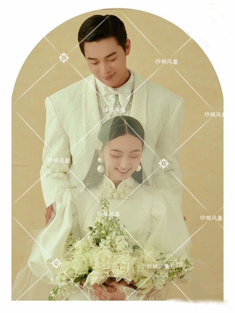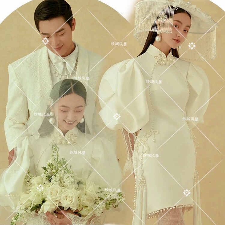 New photo studio retro cheongsam theme clothing new Chinese wedding photography couple photo photo satin short dress