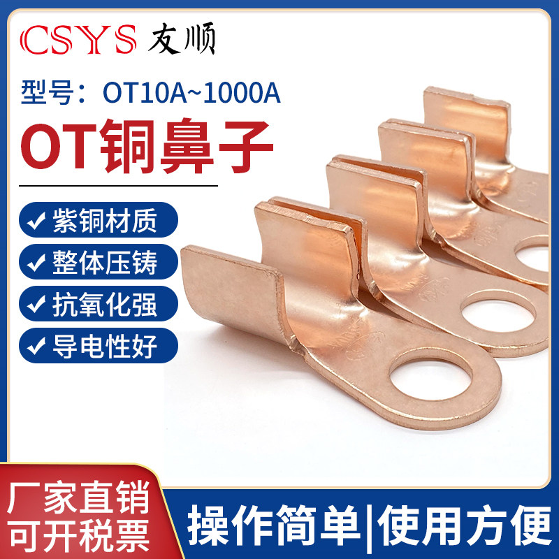 Natural color OT pure red copper open copper terminal 20 40 50 60 100A connector terminal copper wire ear national standard
