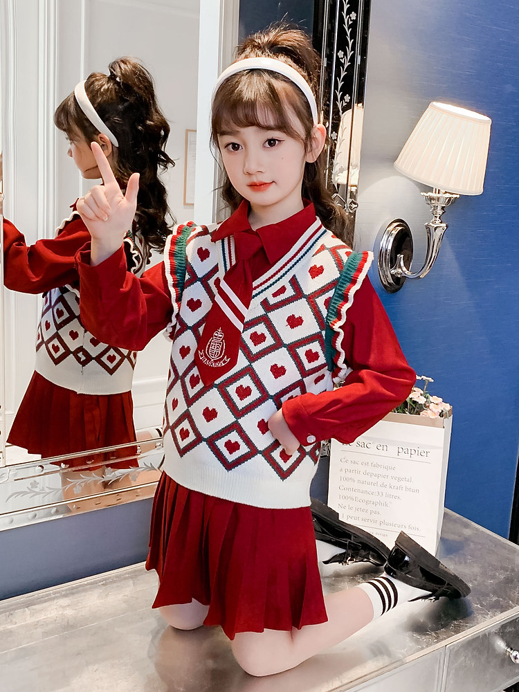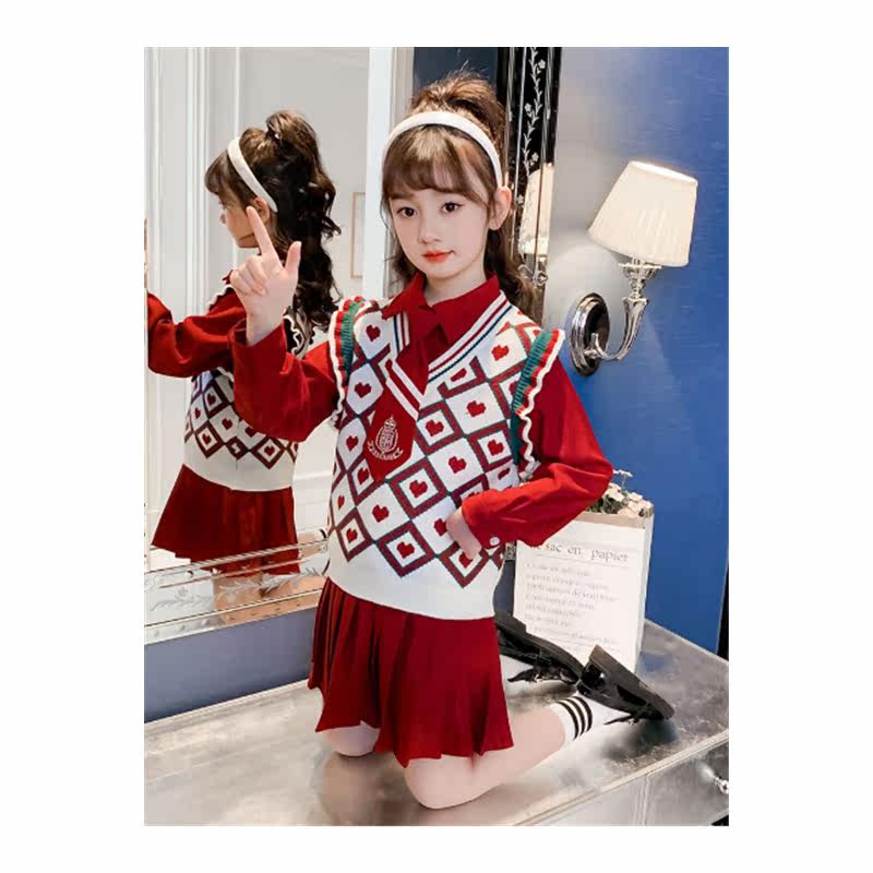 Hong Kong girls' fashion suit spring dress 2022 new children's knitting spring and autumn wear two - piece sets