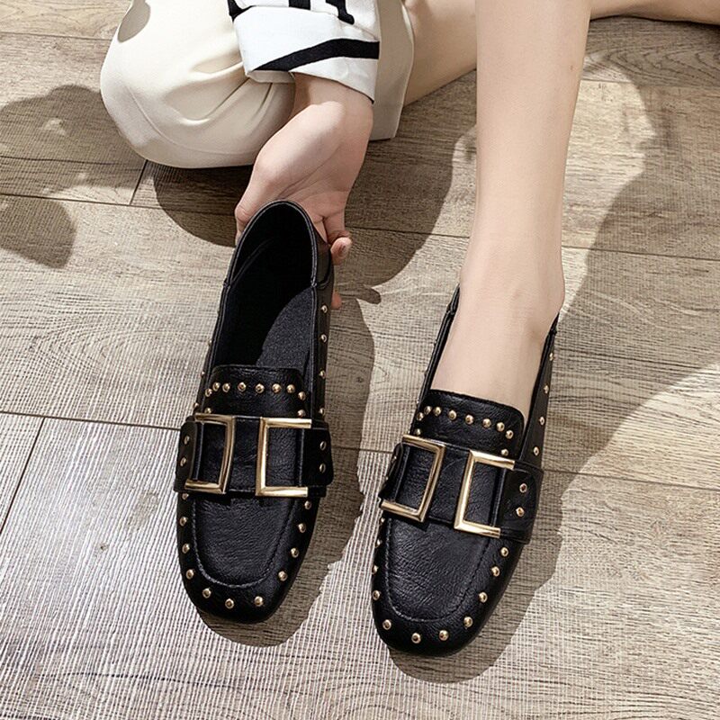 Japanese Beans Shoes Women 2022 Spring new Inn Wind Shoes Small Leather Shoes Women Flat Bottom Single Shoes Rivets Lefu Shoes Children