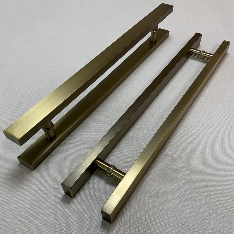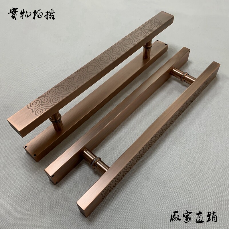Modern minimalist tempered glass door handle stainless steel square pipe thickened ancient bronze black handle shop gate armrests
