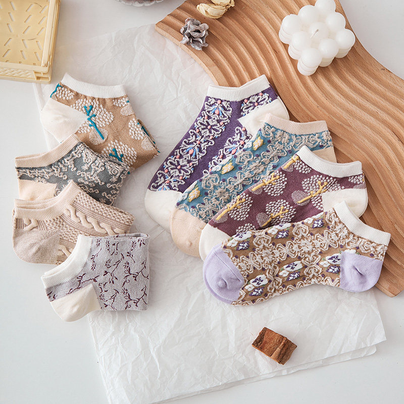 Socks Children Short Socks Ins Chains Chains Chains Chauchsia Flowers Pure Cotton Art Retro Scents Lavender Shallow Low Bunch of summer Invisible Sox