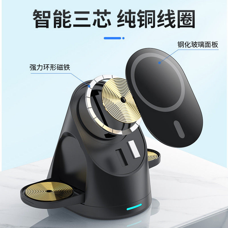 (white) three-in-one wireless charging (sending the magnetic sheet type-C charging wire) (white) three-in-one wireless charging (sending the magnetic sheet type-C charging line QC3 0 charging