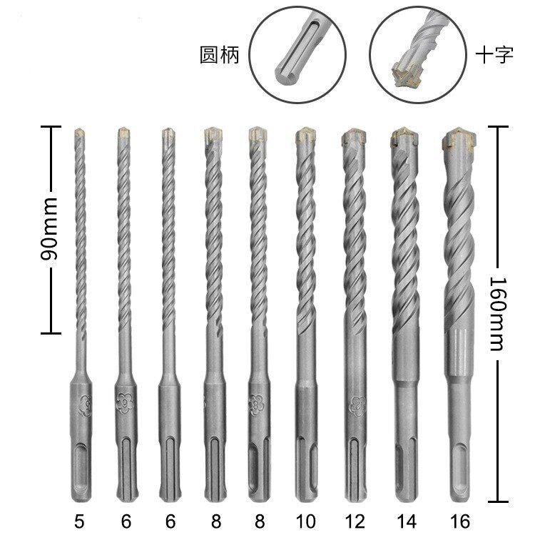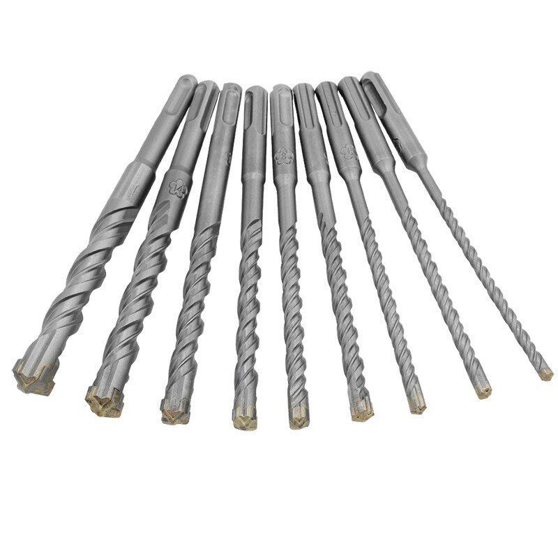 Electric hammer drill bit 8 pieces of suit round shank two pits two grooves concrete wearing wall alloy shock drill bit SDS PLUS