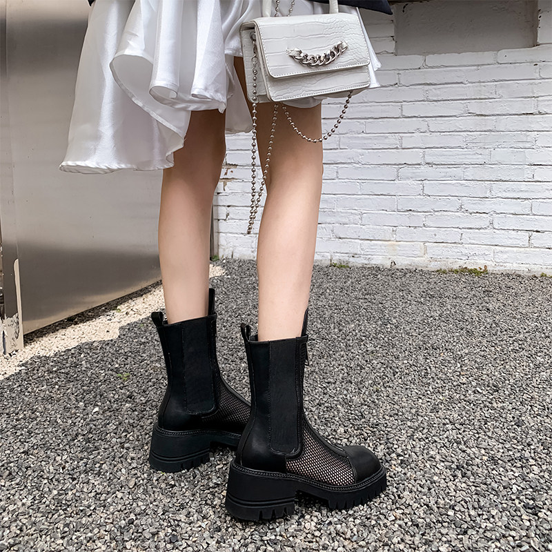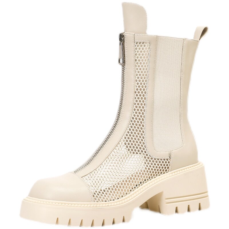 Summer 2022 new Martin boots women's block heel thick sole thin breathable mesh front zip mesh boots white cutout boots