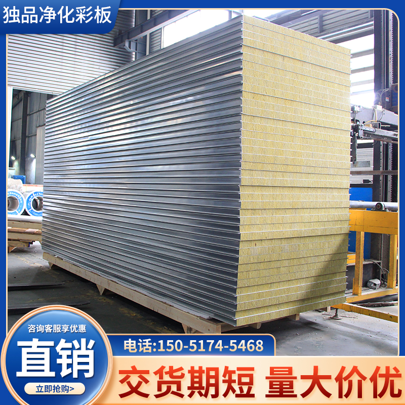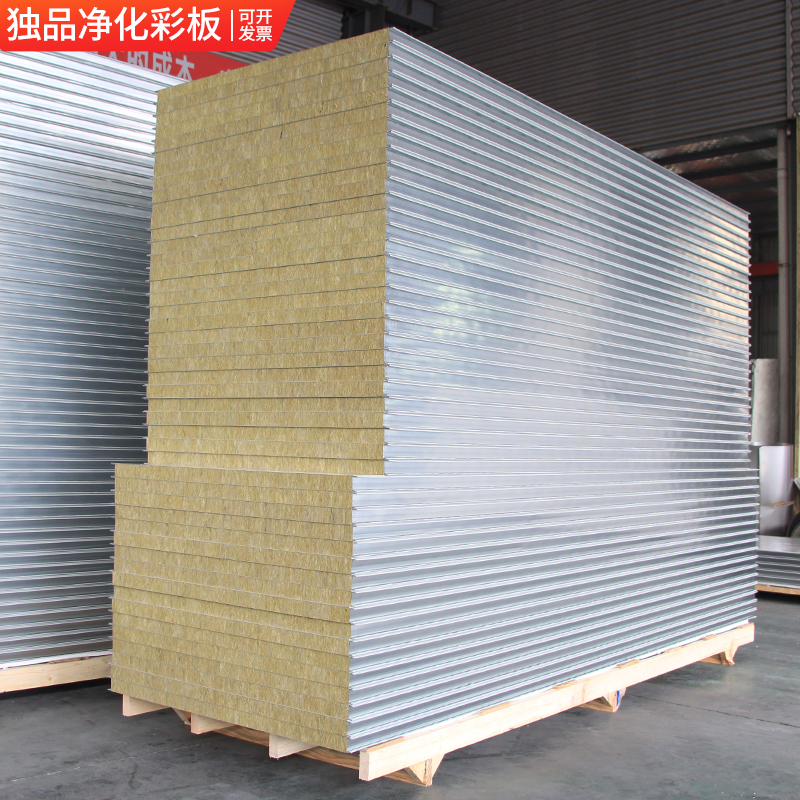 Composite rock wool purification board external wall fireproof sandwich board thermal insulation color steel plate partition wall sound insulation panel ceiling clean panel
