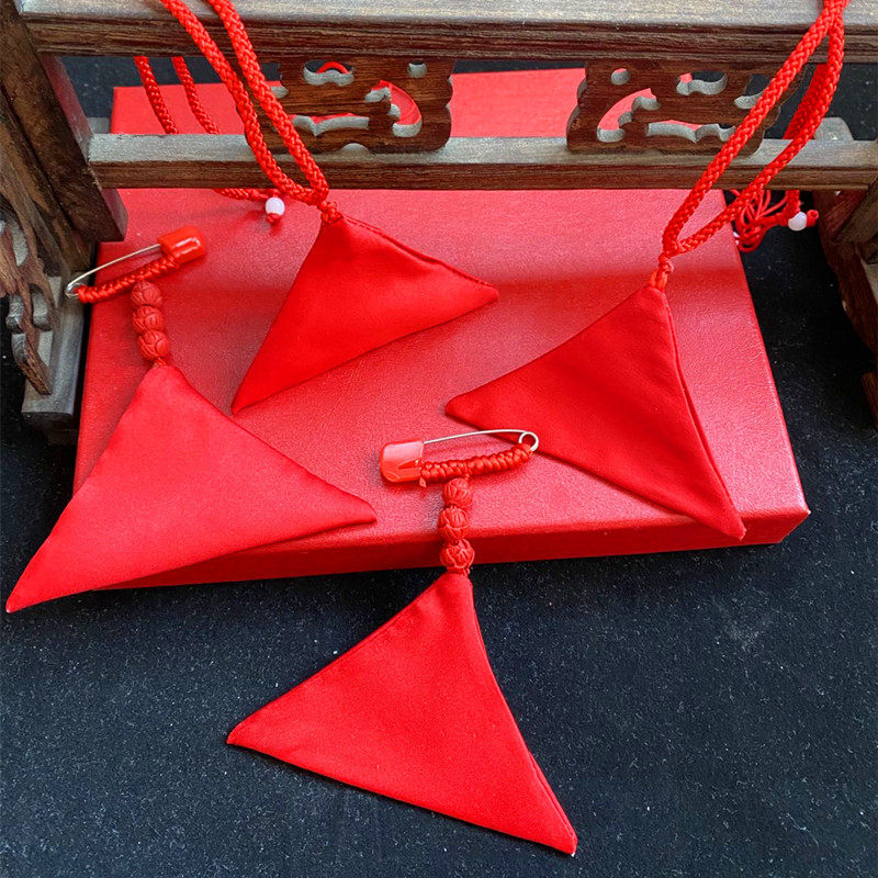 Triangle natural rough stone powder cinnabar bag amulet pendant female peach wood baby lucky bag car pendant for men and women