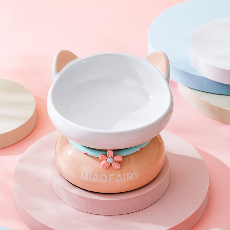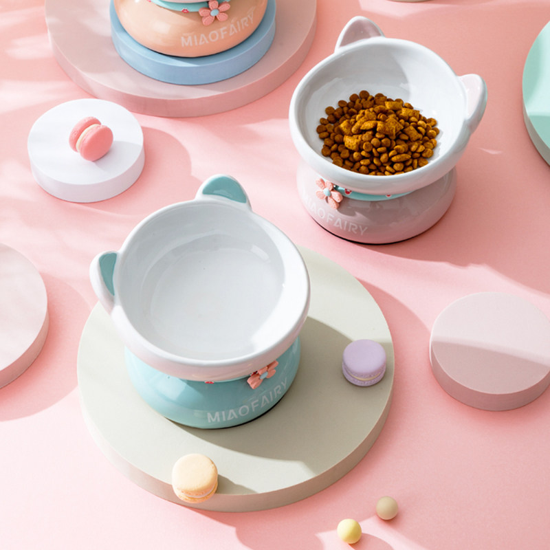 Meow Xianer ceramic cat bowl protects cervical vertebra oblique mouth dog food bowl canned bowl water bowl anti-overturning pet bowl cat food bowl