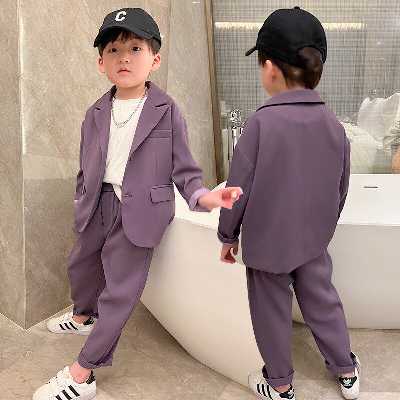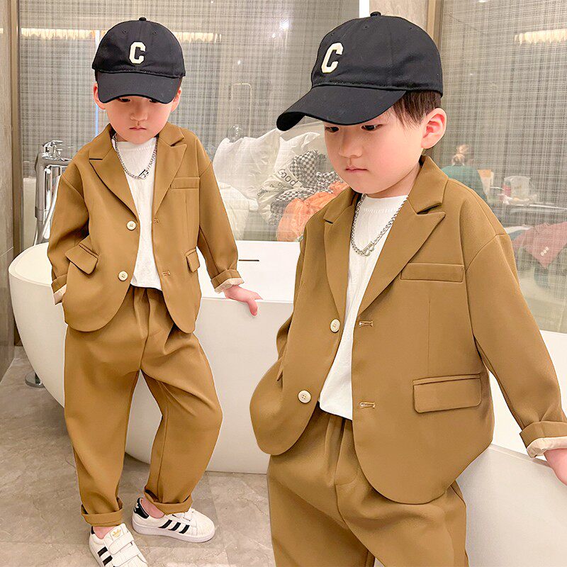 Boy's net red small suit suit Inlan handsome and casual red 2022 Spring style Korean version Children flower children's gown