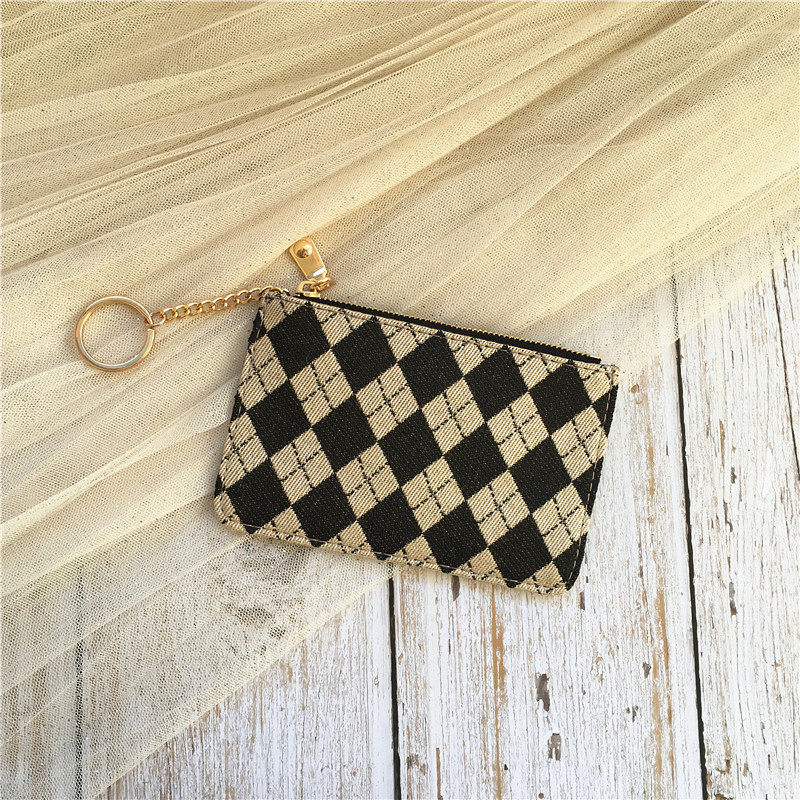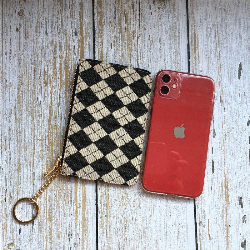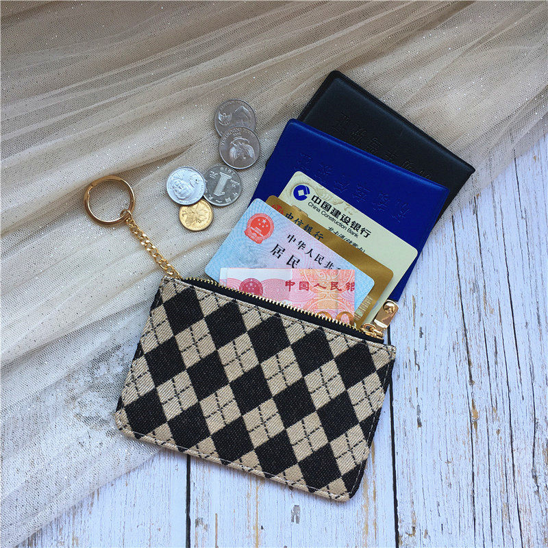Hong Kong style retro diamond small wallet women's short ultra-thin multi-card card holder zipper coin bag new key bag
