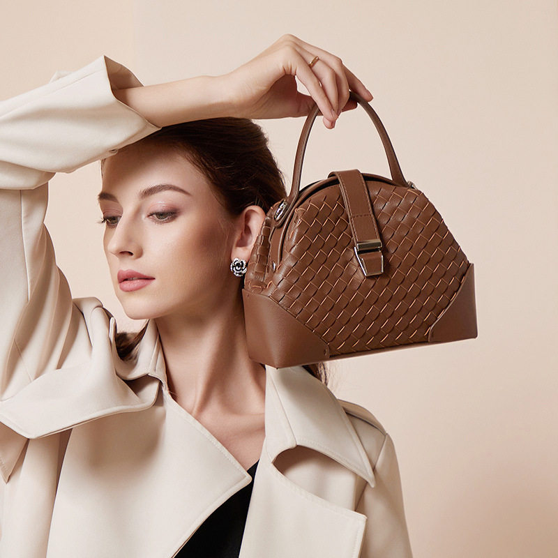 Hong Kong hand - made cow - leather weaving single shoulder - strapped bag 2023 new niche design handcup basket summer