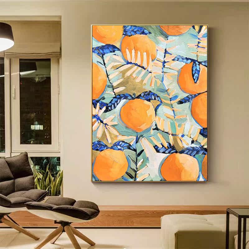 Living room high-sense pure hand-painted painting Nordic Restaurant Fruit Oil Painting Cabinet